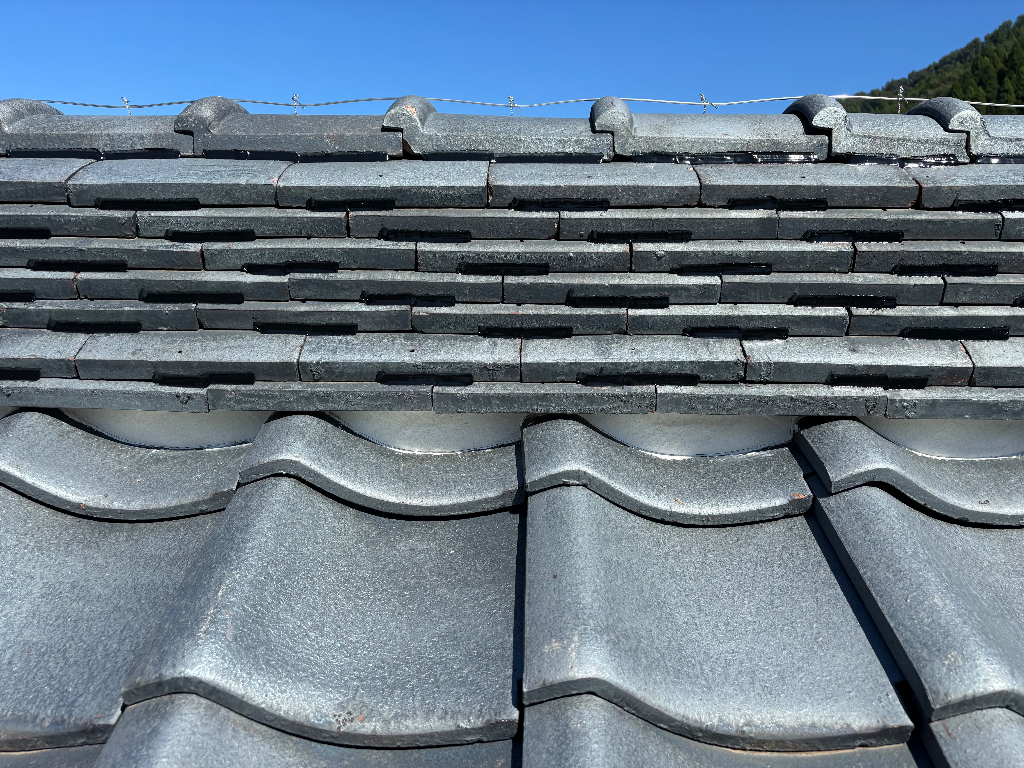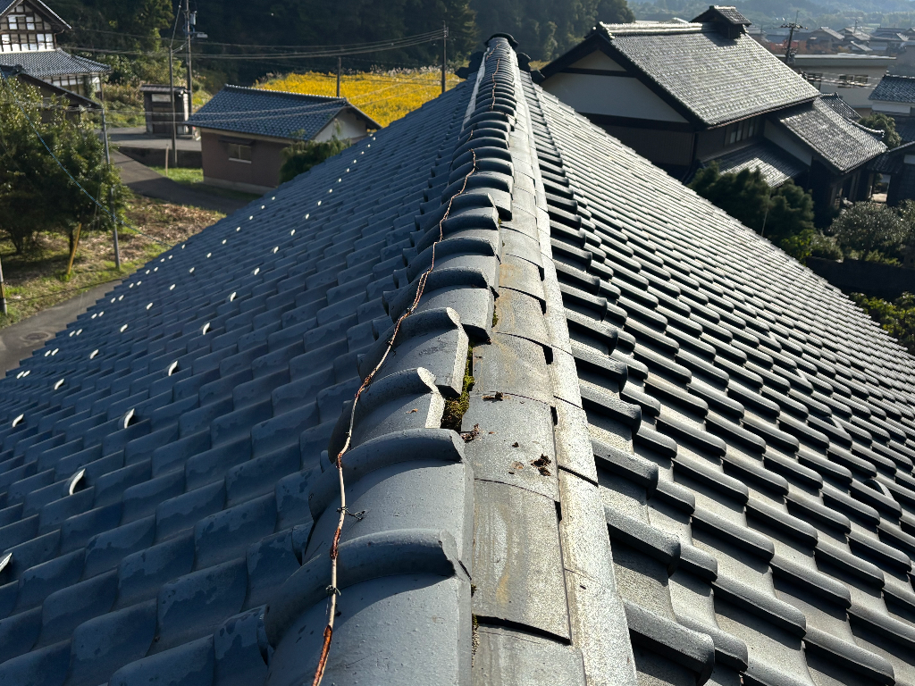 割れ瓦がないか、瓦部分に緩みがないか、棟瓦の痩せがないか、をチェックしました。